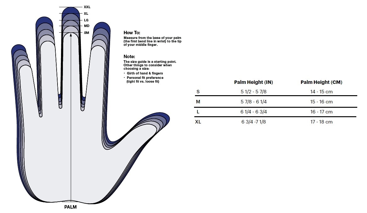 - Silicon printed palm and fingers improve grip and lever traction