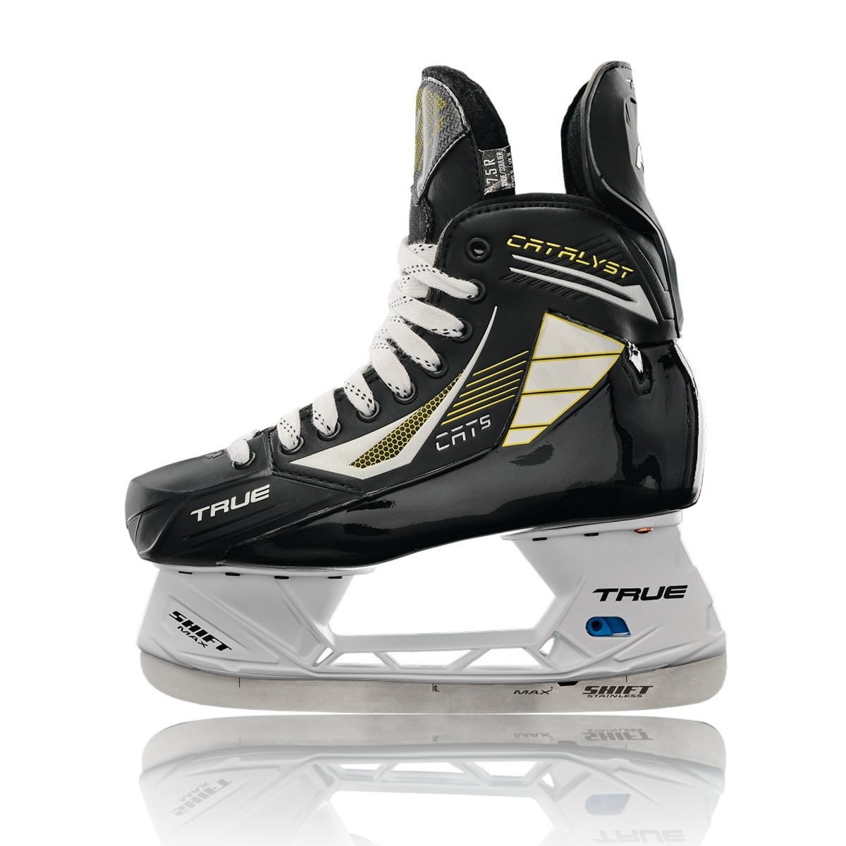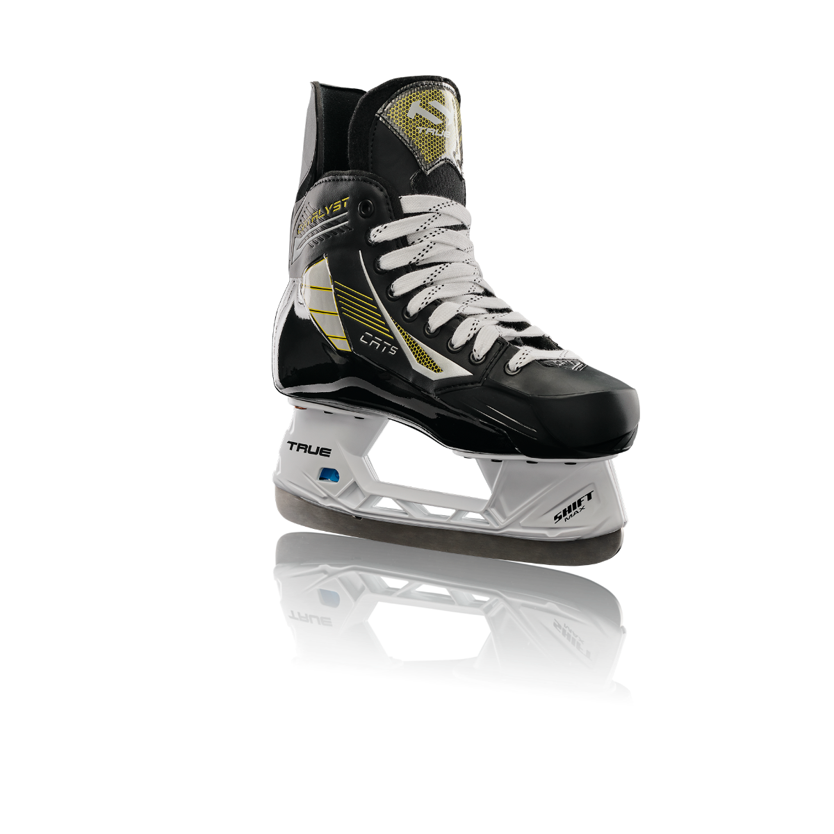 Featuring a lightweight one-piece fiberglass boot, a moderate shell stiffness, and a dynamic flex tendon guard, the CATALYST 5 is ideal for any player seeking the fit and elite performance benefits that are synonymous with TRUE skates at an economical price point and with added durability.