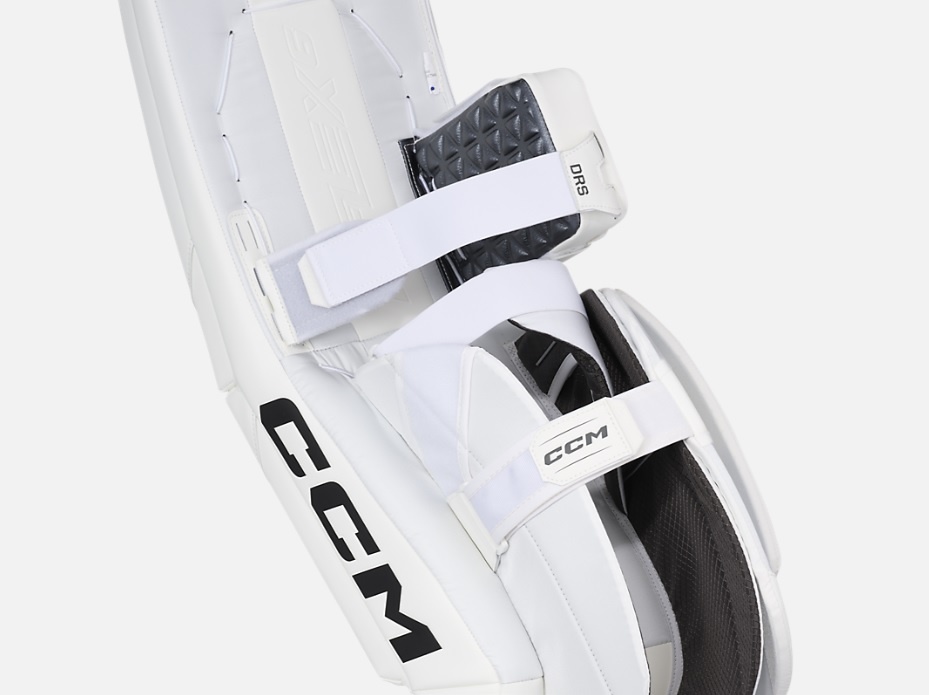 The EFlex E6.9 offers an open design with removable knee cradle wrap coupled with CCM’s Dynamic Response System, another feature coming over from the Axis 2 line. The DRS system features a one-piece landing zone for enhanced protection from repeated impacts dropping into the butterfly.