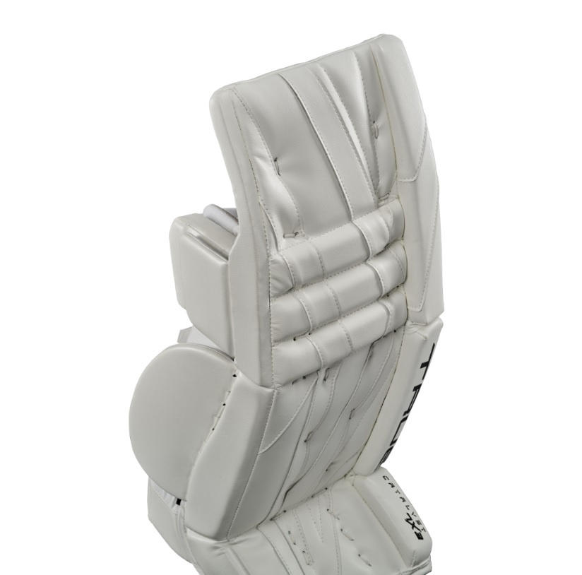 • Thinner thigh rise provides ease in pad overlap when standing up or in butterfly. The pads are more reactive when dropping down and popping back up from the ice, giving greater mobility in game situations.