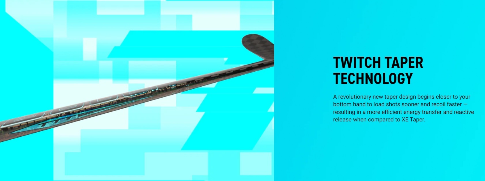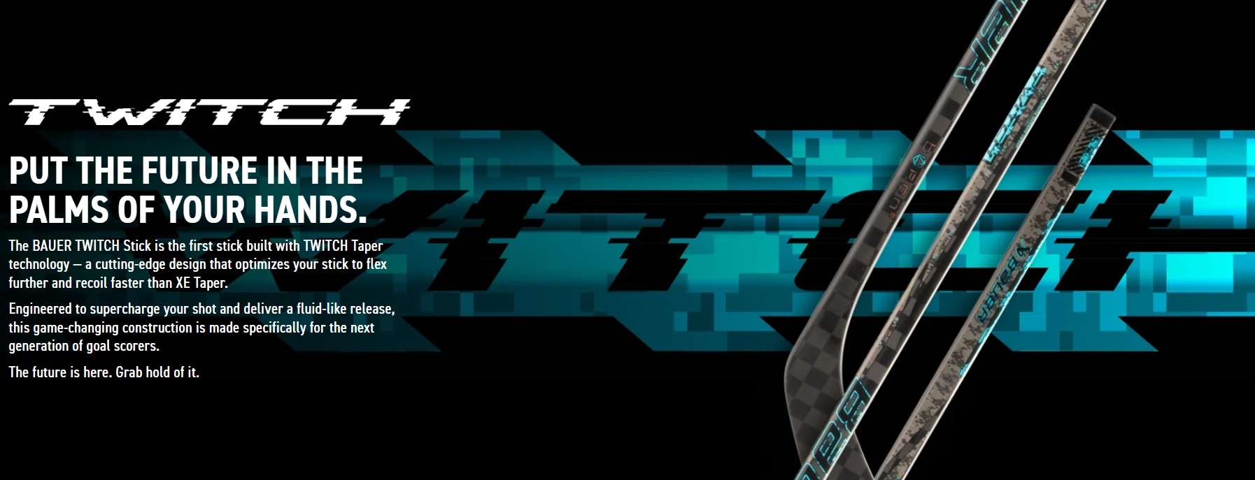 Put the future in the palms of your hands. The BAUER TWITCH Stick is the first stick built with TWITCH Taper technology — a cutting-edge design that optimizes your stick to flex further and recoil faster than XE Taper.
