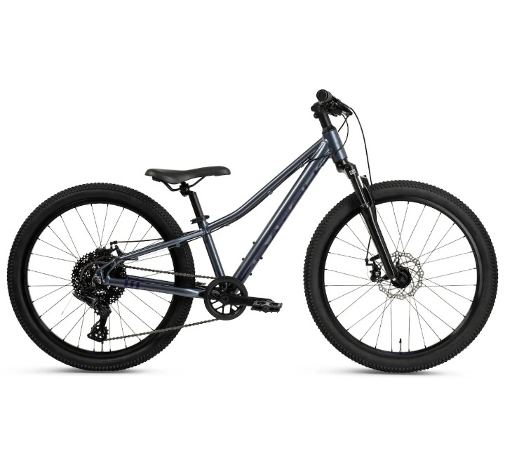 The simple and reliable Microshift 1x8 drivetrain offers all the gear range they need without any complexity, while mechanical disc brakes deliver consistent stopping power on dirt or pavement. Kenda 2.1” trail tires add grip without bulk, and the 24” wheels make handling responsive and fun. Whether they’re chasing trail time or just riding with friends, the KM.24 is built to grow with them — and built to ride like a real mountain bike.