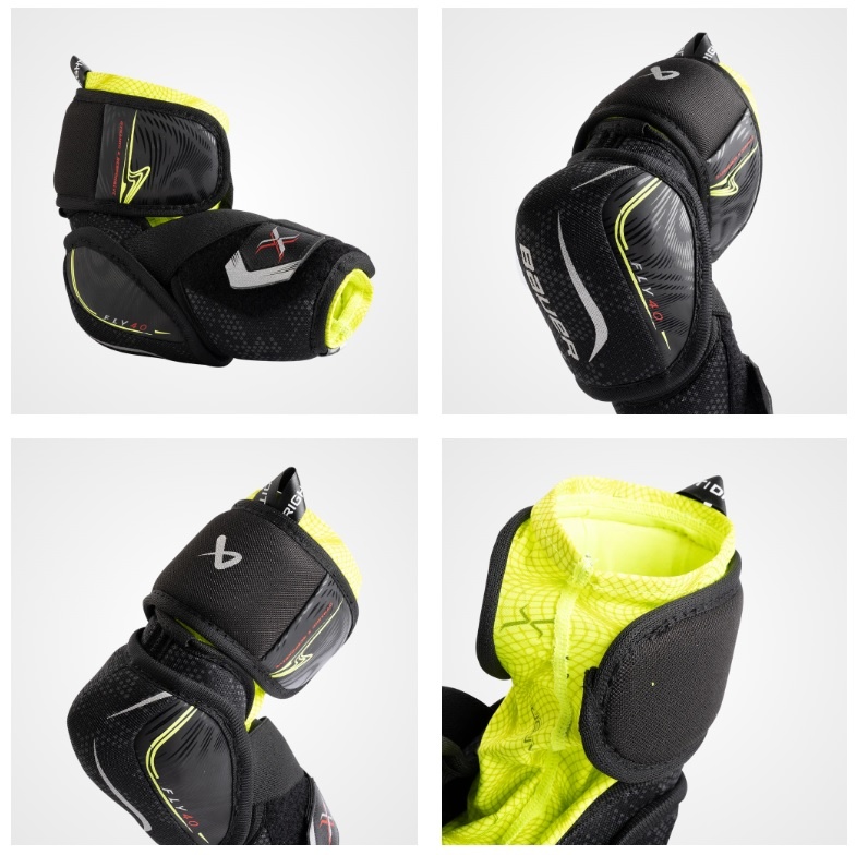 Fly into the game with complete comfort. The VAPOR FLY40 Elbow Pads are made for players looking for a step up in comfort and performance as they continue to grow their game. A deeper-fitting elbow cap and tapered forearm are designed to keep the pad in place, while molded PE foam keeps you protected from lighter impacts.