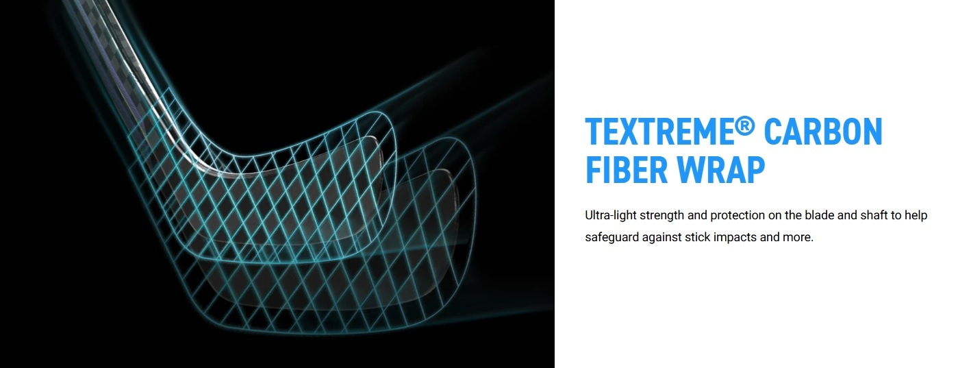 - TeXtreme® Carbon Fiber Wrap – Ultra-light strength and protection on the blade and shaft to help safeguard against stick impacts and more.