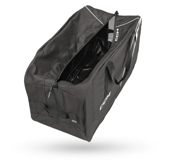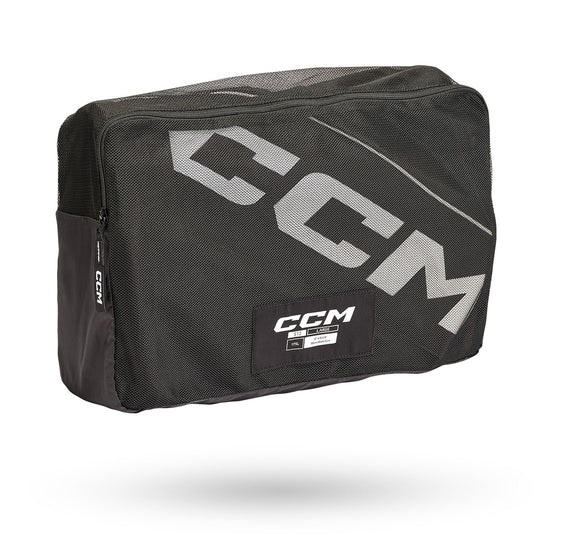 This player carry bag keeps your gear secure and organized. This model features dedicated skate pockets, a laundry loop, and an extra mesh bag to separate essentials and for laundry, while the side panels enhance airflow. Made from high-density polyester with a PVC coating and finished with reflective piping around the CCM logo, it’s built to handle the demands of every game and practice.