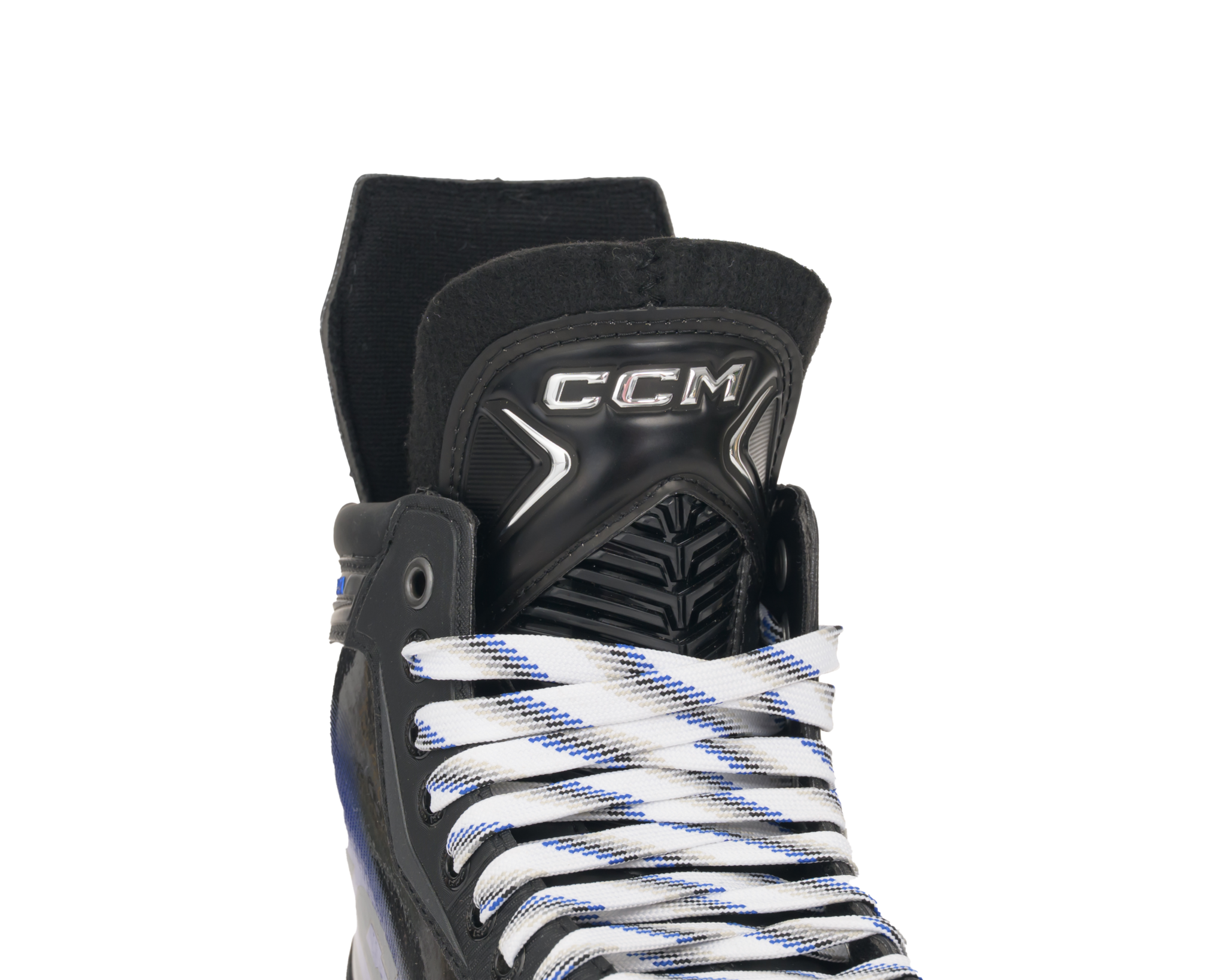 CODE BLUE: The JETSPEED XTRA junior skates offer a lightweight and durable design for young players. The 2D quarter with faux carbon skin provides an ergonomic fit with lasting support. ADPT memory foam ankle pads create a snug, comfortable interior, while the 7mm felt tongue with 3D mesh lacebite protection enhances flexibility and reduces pressure. Equipped with a CCM SpeedBlade holder for optimal flex and XS1Stainless runners, these skates are optimal value for the junior skater