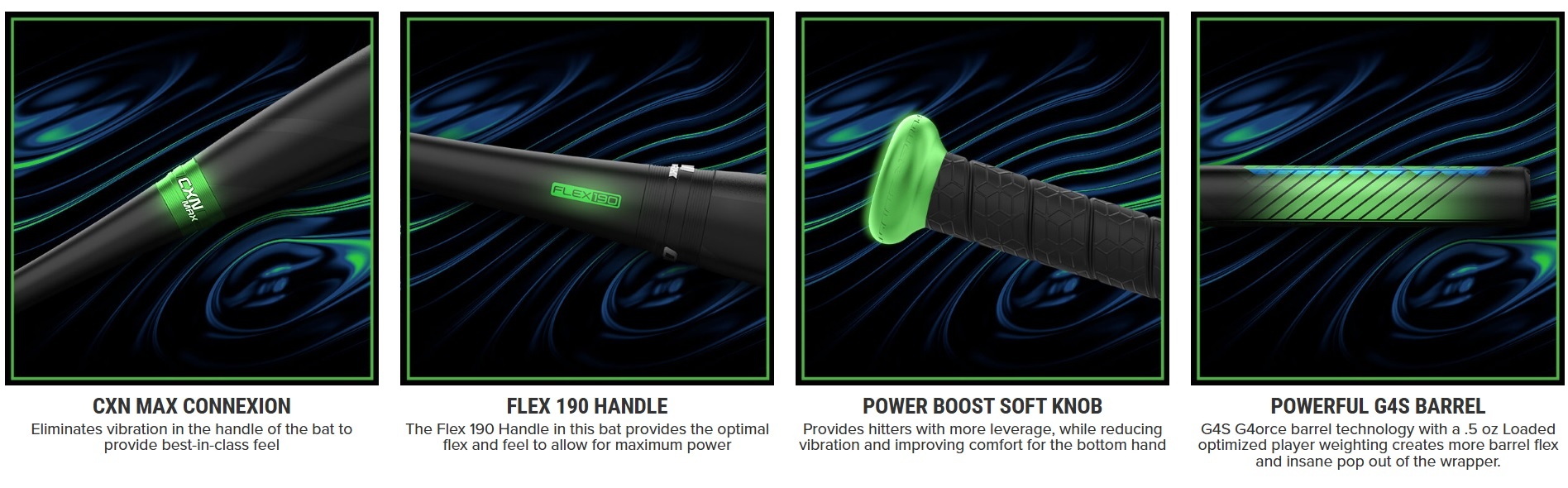 This black and green, two-piece Tantrum bat comes equipped with our elite G4S G4orce Technology, which is a triple region barrel flex that allows for variable compression across the barrel – which lets you crush every pitch into oblivion.