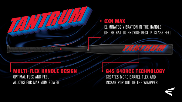This black and red, two-piece Tantrum bat comes equipped with our elite G4S G4orce Technology, which is a triple region barrel flex that allows for variable compression across the barrel – which lets you crush every pitch into oblivion.