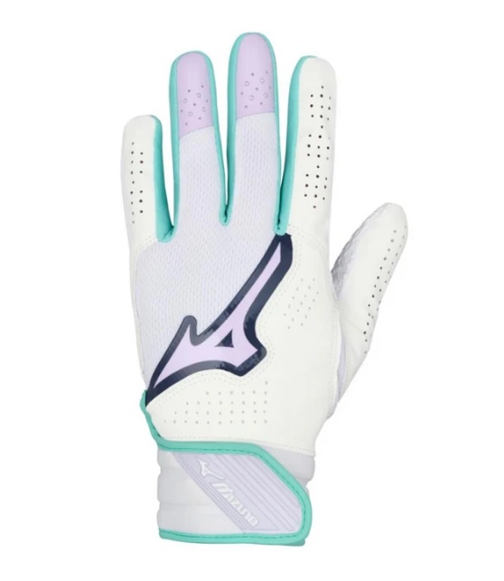 Designed with direct input from softball legend Jennie Finch, this batting glove was created with the softball player's specific needs in focus. Features a nonslip, padded Mizuno ShockPalm to better absorb vibration for enhanced comfort. Also features an FlexMesh back designed to increase flexibility and breathability.