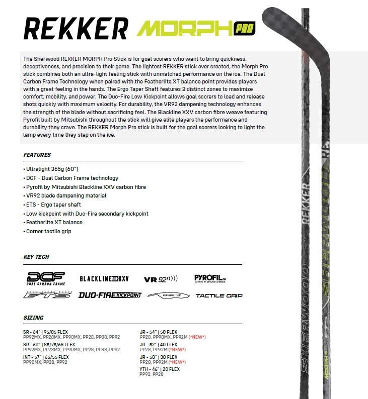 deceptiveness, and precision to their game. The lightest REKKER stick ever created, the Morph Pro