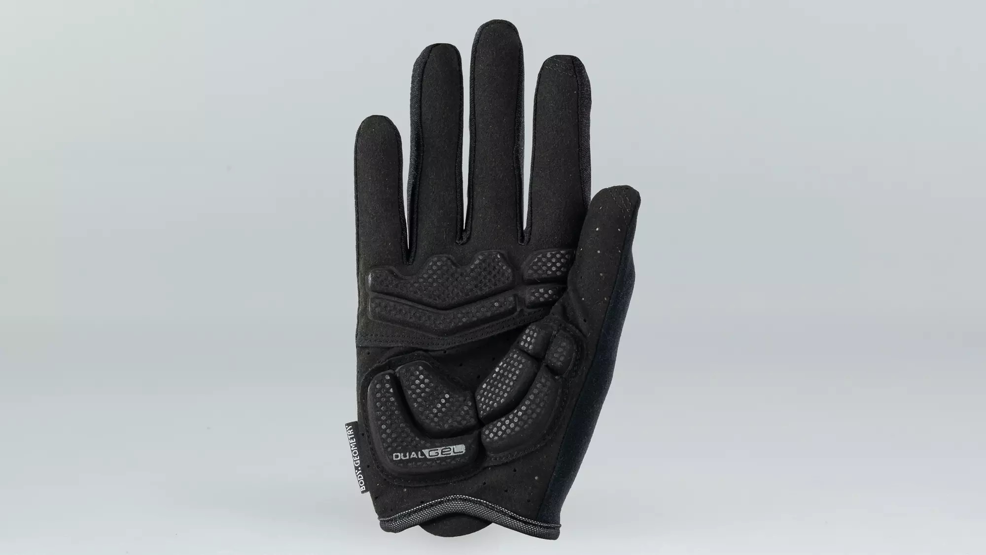 All-day comfort starts with our Body Geometry Dual-Gel Long Finger Gloves. Strategically placed gel pads reduce hand fatigue by relieving pressure on the ulnar nerve, while a synthetic suede palm combines durability and grip. A breathable back keeps you cool, and touchscreen compatibility ensures you're always connected. Perfect for tackling miles of road or trail.