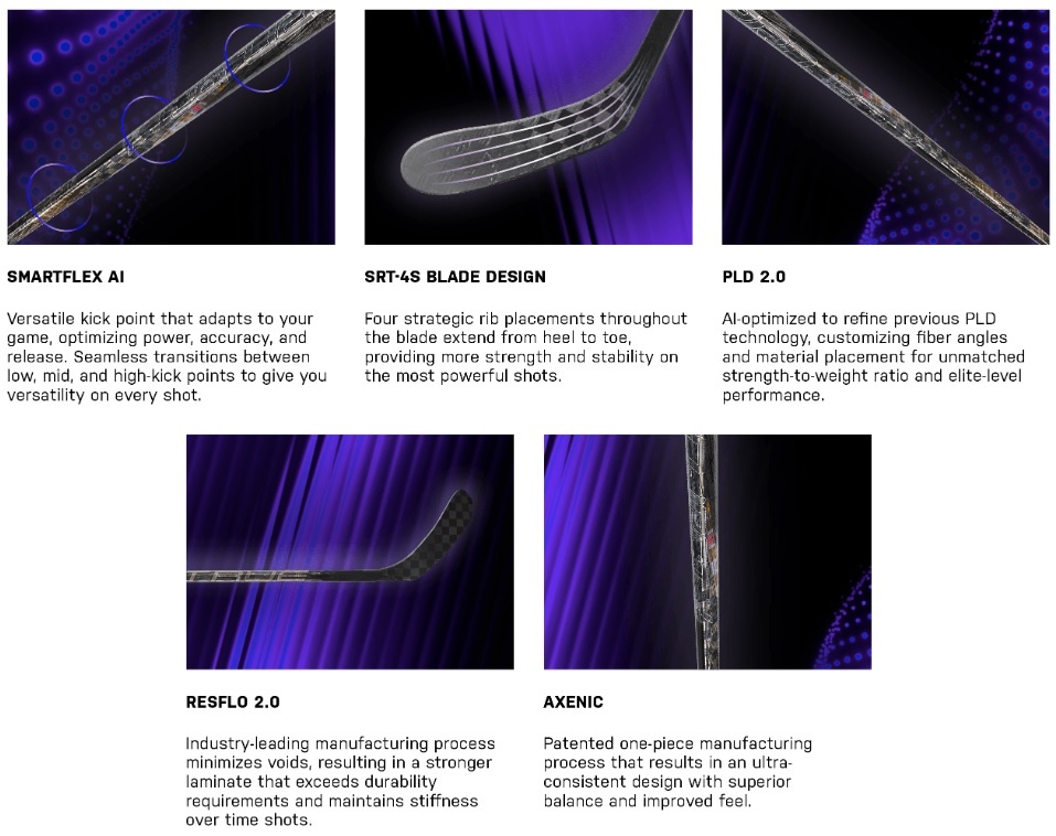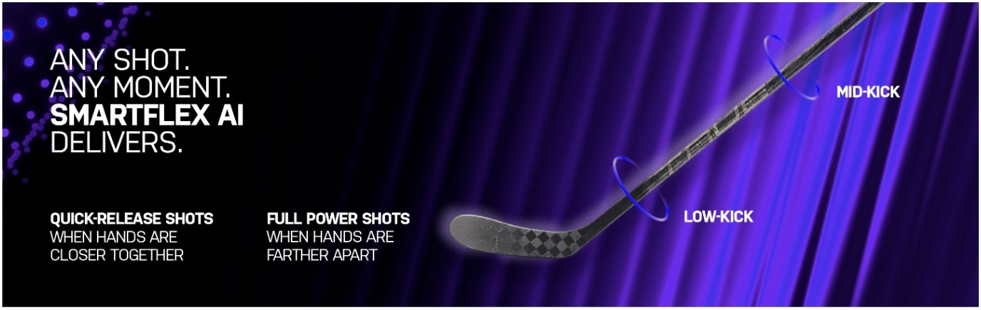 SMARTFLEX AI minimizes power loss and delivers consistent, explosive puck velocity on