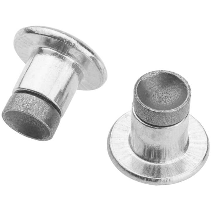 45NRTH utilizes a two-piece construction method to create a reliable and high-performing bicycle tire stud, featuring a concave carbide-aluminum design. The super-sized concave crown creates open space and inside edges of the bowl, resulting in twice the surface area for increased traction and grip.