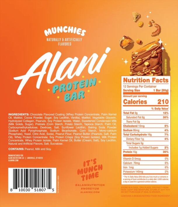 Salty peanuts, caramel, chocolate, pretzels, and toffee -- our Munchies Alani Protein Bars are here to crush your cravings! Bursting with chewy, gooey flavor, get your munch on guilt-free and enjoy 15g protein, 3g sugar, and only 210 calories.