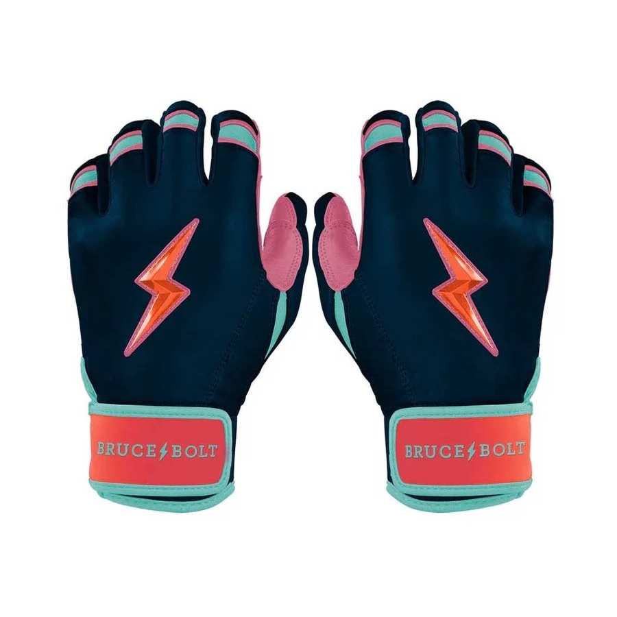 HIGHEST QUALITY, MOST DURABLE BATTING GLOVE IN BASEBALL: Each pair of BRUCE BOLT batting gloves are handmade by skilled craftsmen using only the highest quality 0.9mm Cabretta leather and stitching techniques which makes our gloves buttery soft but more durable than any other glove on the market.