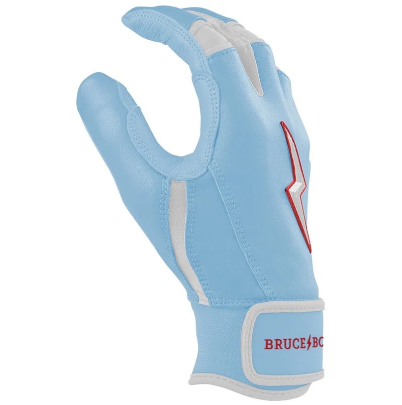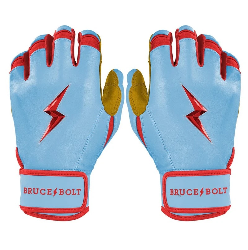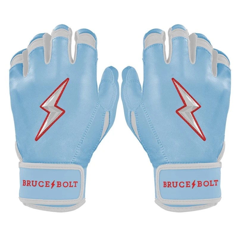 HIGHEST QUALITY, MOST DURABLE BATTING GLOVE IN BASEBALL: Each pair of BRUCE BOLT batting gloves are handmade by skilled craftsmen using only the highest quality 0.9mm Cabretta leather and stitching techniques which makes our gloves buttery soft but more durable than any other glove on the market.