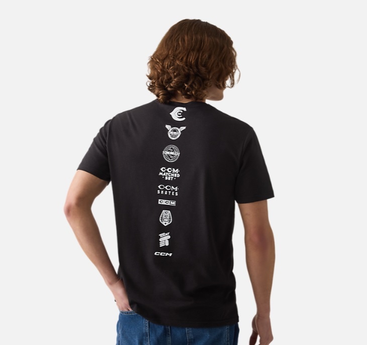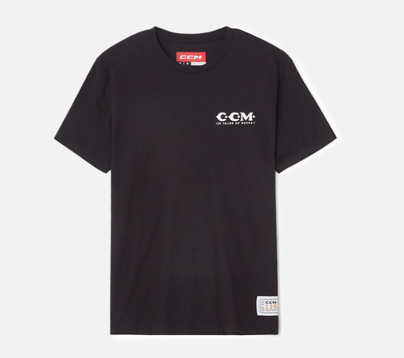 Travel back in time with our 125 years short-sleeve tee, showcasing historical CCM logos. Made from a blend of polyester, cotton, and rayon, this tee is the ideal off-ice pick for the true hockey aficionado.