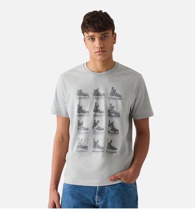 Step into history with our 125 years short-sleeve tee, showcasing the evolution of skates throughout the years. Crafted from a polyester, cotton, and rayon blend, it's the perfect off-ice choice for any hockey enthusiast.