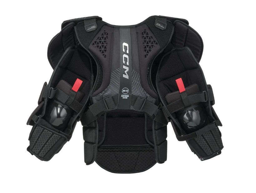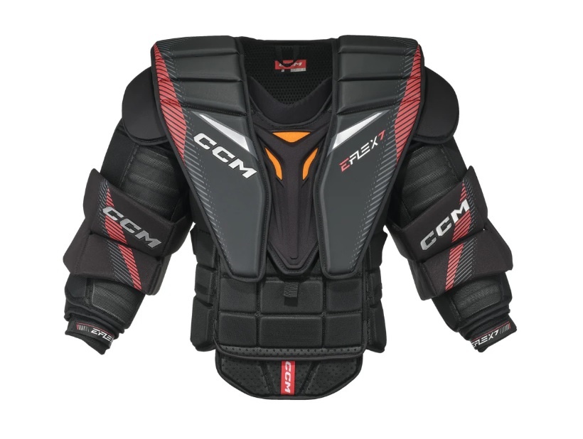 Maximize performance with the EFLEX 7 chest protector, designed for elite goaltenders who demand protection, mobility, and coverage. Key upgrades include square coverage up top that tapers in for a mobile fit and the ADPTFIT adjustable elbow system for a comfortable, secure fit. Its Max Flex Fit features optimized flex points and fit adjustments to ensure square but flexible coverage and balanced positioning along the body. Featuring molded HD foams throughout, extended rib protection and D3O® technology in the most critical areas, it offers superior impact protection on all shots. AER-TEC Suspension (Sr-only) and Ventilation System optimizes airflow and breathability to help improve body temperature regulation, increase focus and reaction time, and ensure peak performance from puck drop to the final buzzer.