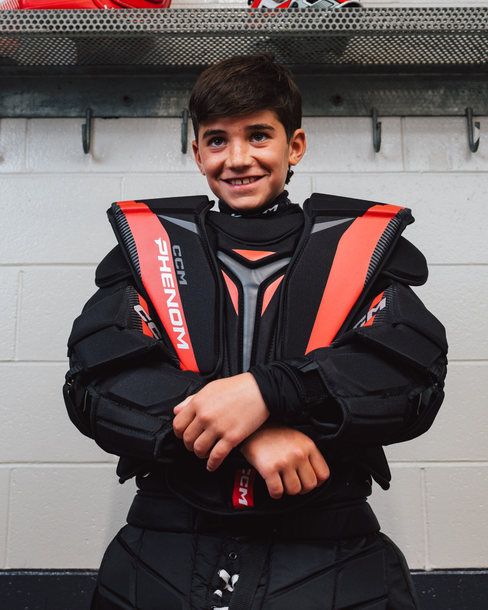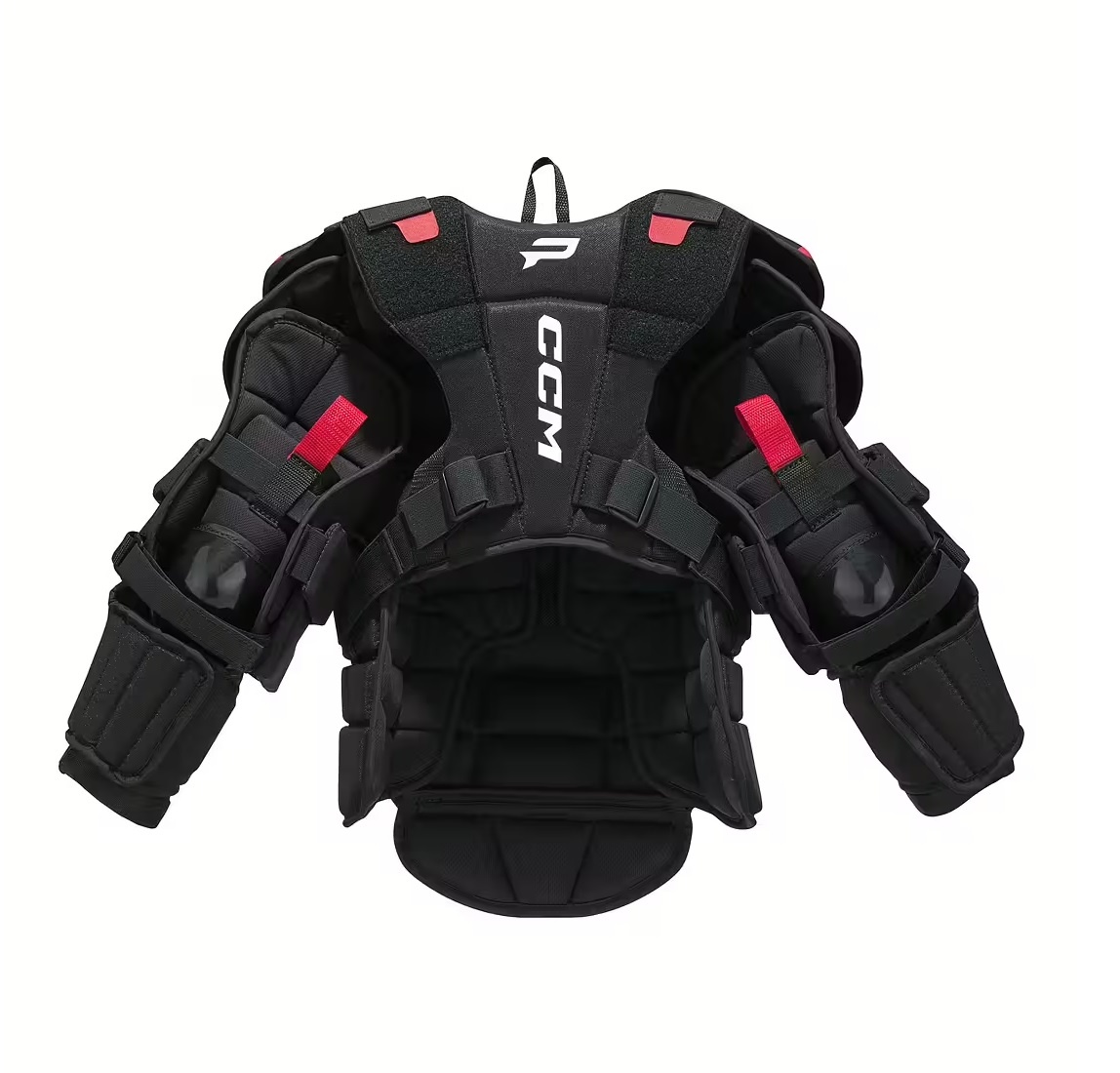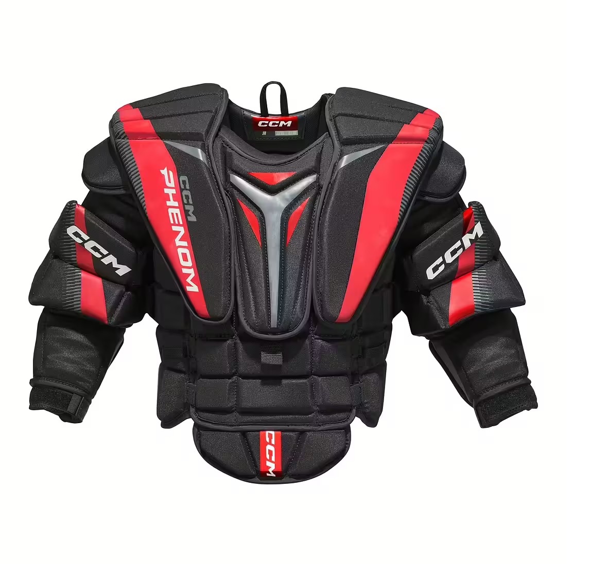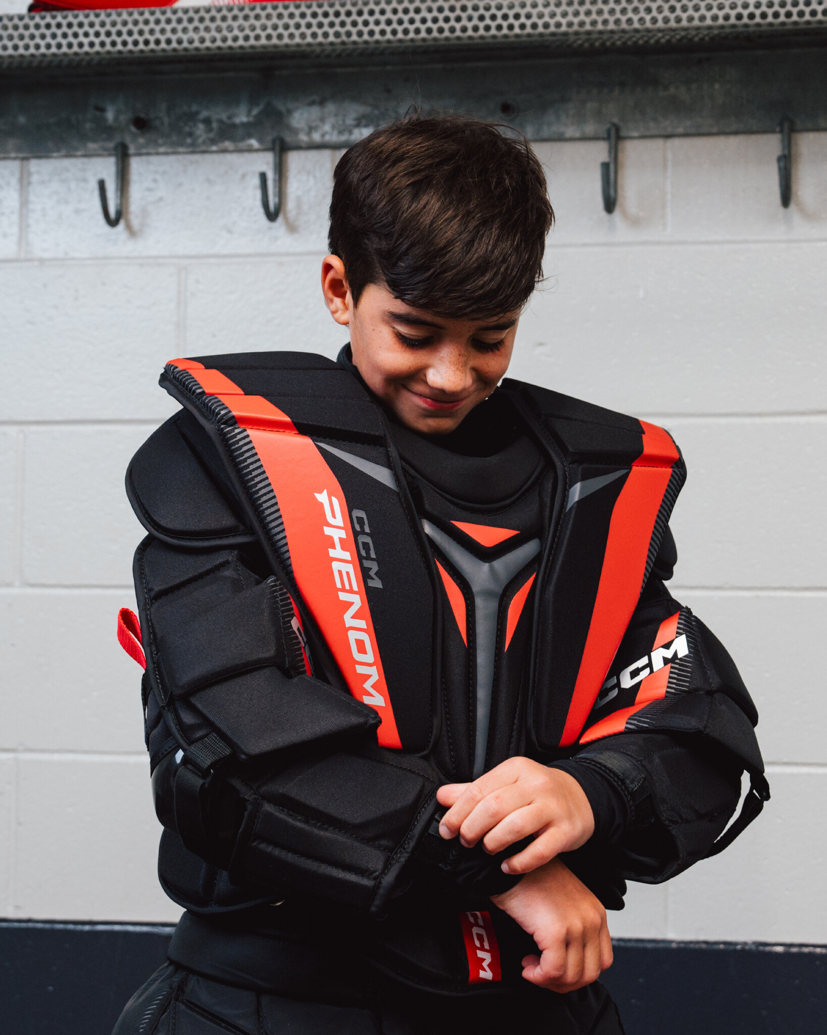 The CCM Phenom Jr chest and arm is specifically developed to provide young goalkeepers with the right balance of protection, mobility and comfort. With Max Flex Fit design, the goalie gets a mobile fit with extended coverage, allowing quick movements without limiting flexibility. Comfort padding and multi-layered foam across the chest, ribs and collarbones help absorb shots and absorb shock. ADPTFIT in the elbows provides an adjustable and secure fit, while segmented construction around the chest increases compliance. With the CCM Phenom Jr, young goalkeepers can develop their game in protective gear that is both safe and comfortable.