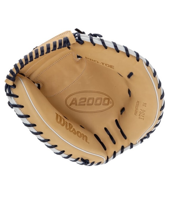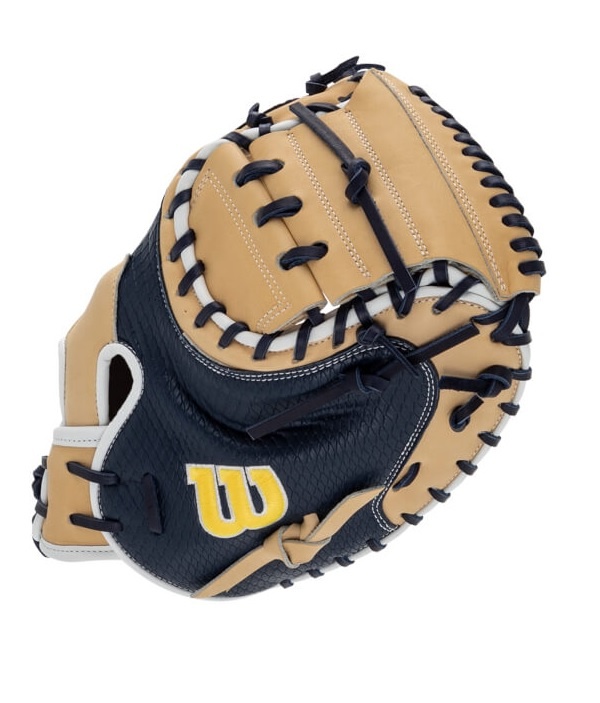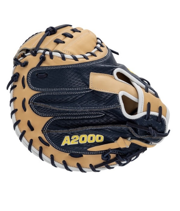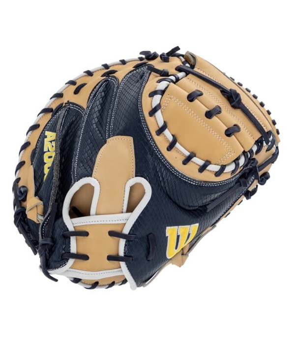 Finished in a striking colorway of blonde and navy SuperSkin, the Wilson A2000 SuperSkin 2034 Catcher's Mitt not only performs at an elite level but also stands out with its bold, professional look. Whether you're a high school catcher or an adult player, this mitt is built to help you command the game from behind the plate.