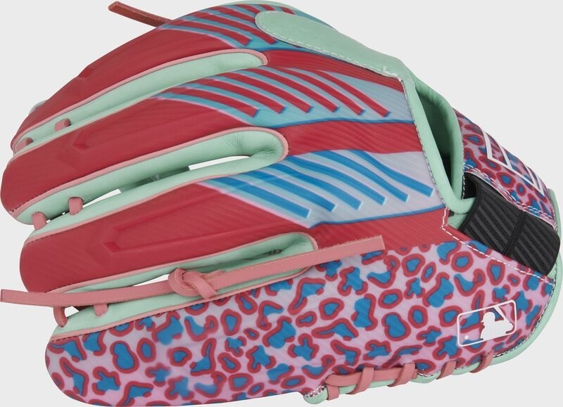 The splashiest glove series in the game is back, and this time, it brought something new. Introducing the FIRST ColorSync REV1X! This 11.75-inch infield glove features a stunning shell back design with a distinct leopard-print trim in red, pink, and blue.