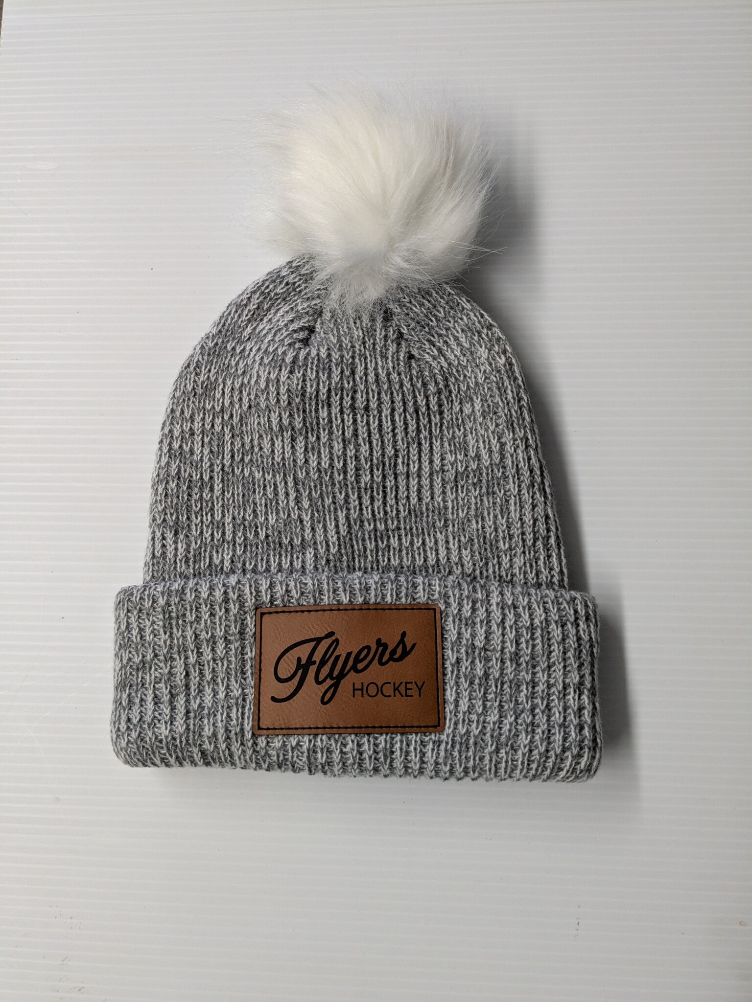2025 ASSOCIATION GREY WITH WHITE POM TOQUE SACKVILLE FLYERS FAUX LEATHER PATCH OSFM
