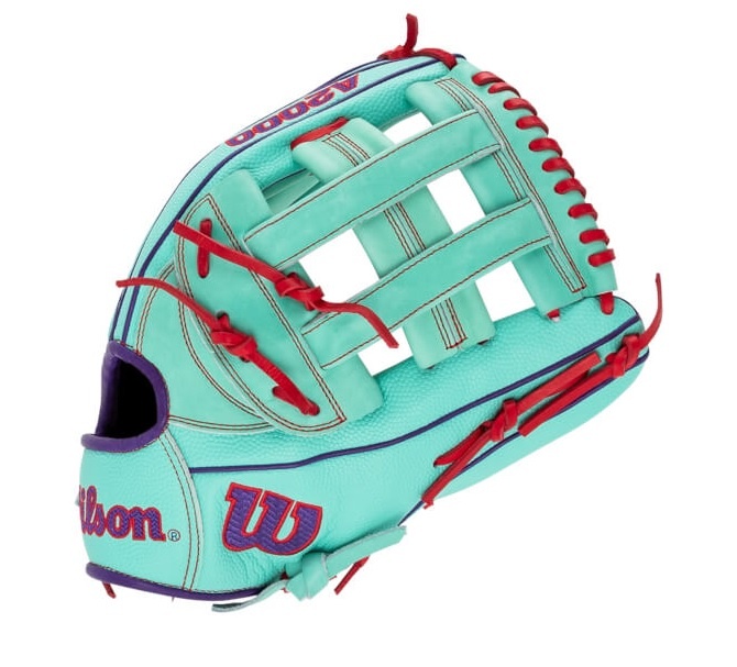 Crafted from Wilson's Pro Stock® leather, the glove offers the durability and structure needed for high-level performance season after season. Inside, the Comfort Pro™ Fit adds a ProLux™ leather liner and Comfort Sleeve for enhanced feel around the wrist. Rolled Dual Welting reinforces the glove’s shape and break-in integrity, while Flat Finger Binding provides added control and comfort for players who wear a finger outside. The Seafoam and Red colorway with bold Wilson logos brings a modern pop to a pro-quality glove.