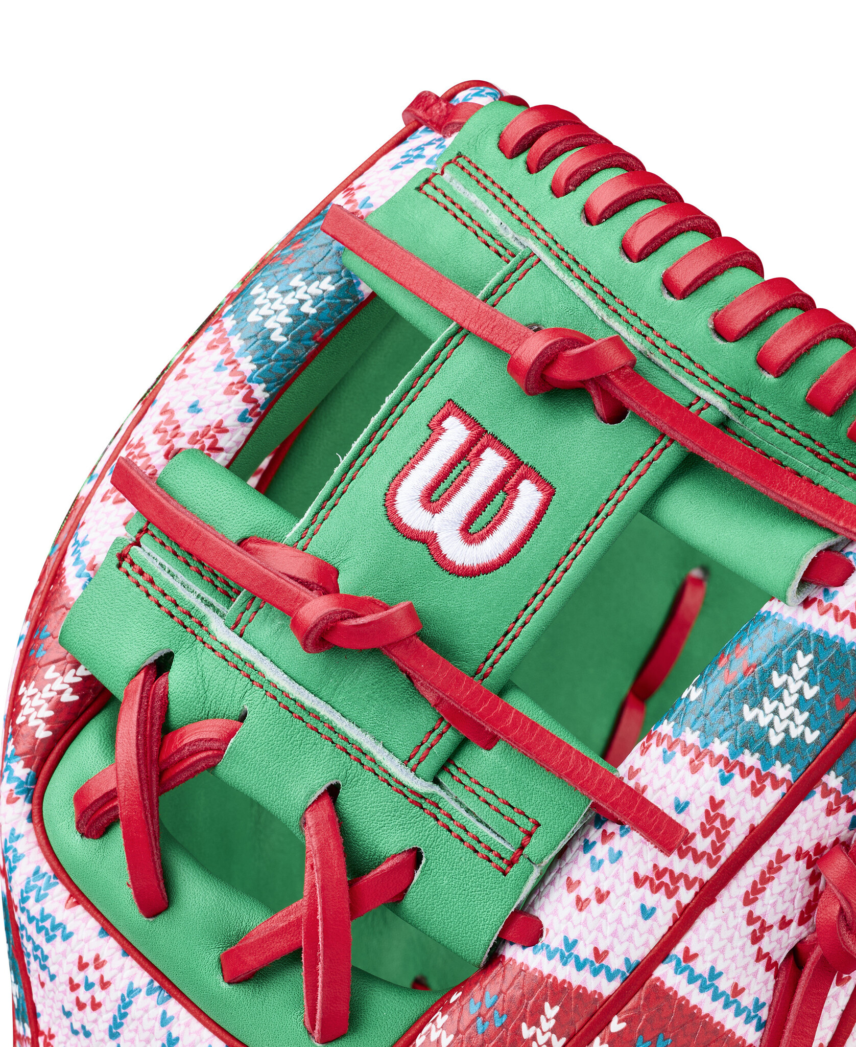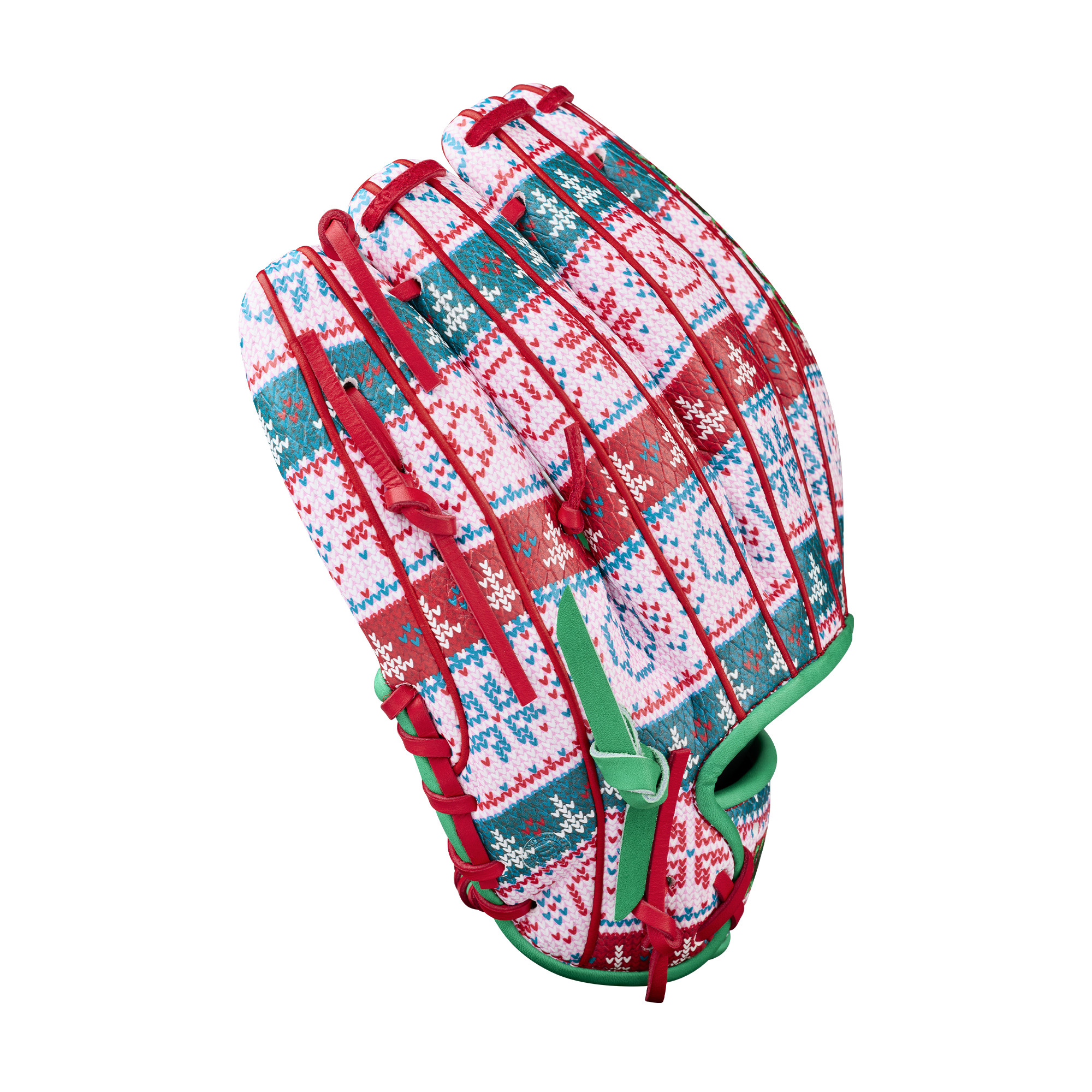 Bring cheer to the infield with this custom A2000® 1975SS, featuring off-white SuperSnakeSkin decorated in holiday scenes to match your favorite sweater for the most wonderful time of the year. The 11.75” glove has a deep pocket to give middle infielders and third basemen full control of hard-hit balls.