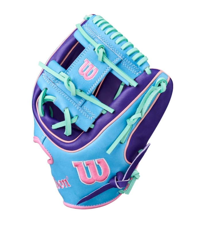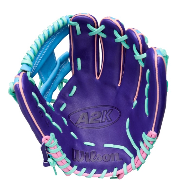 A2K® 1720 boasts a barrage of bold colors with Sky Blue, Purple, Seafoam & Pink Pro Stock® Select leather, triple-sorted for flawless performance and appearance. The 11.5” size and shallow pocket design turns quick plays at second base and shortstop.