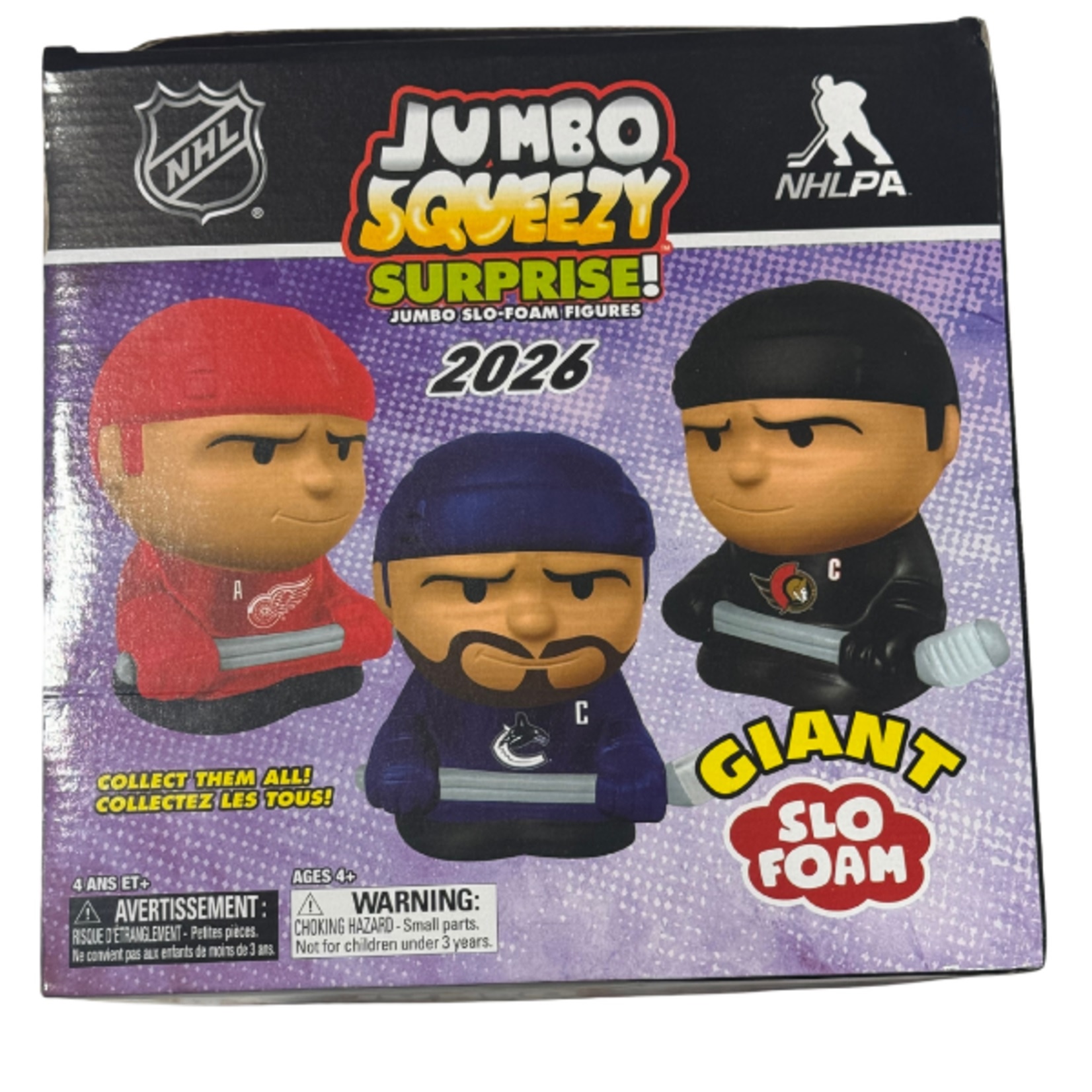 Made from the fun to squeeze material, Slo-Foam, Jumbo Squeezys are collectible and squishy NHL figures! The squishy jumbo player figure inside each capsule is random, which adds mystery and fun to each one!
