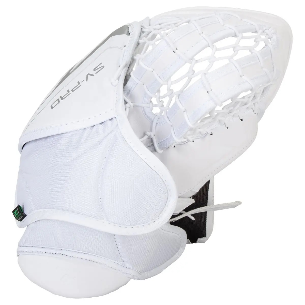 CURV Reinforced Cuff: The SV-Pro glove's cuff is reinforced with CURV composite to help pop pucks off the cuff or into the pocket. Implemented to improve long-term durability, CURV composite offers unmatched resistance to cracking, deforming, or splintering, at low temperatures.