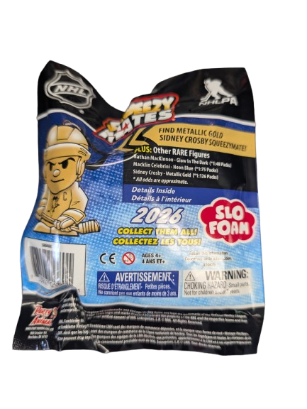 The 2026 NHL SqueezyMates are the latest squishy, slow-foam hockey collectible figures, now featuring player names and numbers with player stars like McDavid and Bedard.