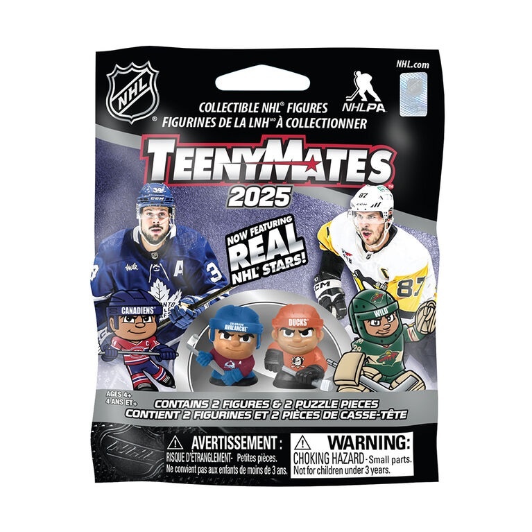 Inside each blind pack is 2 random 1" TeenyMates Player Figures, 2 Double-Sided Puzzle Pieces and 1 Collector's Checklist.