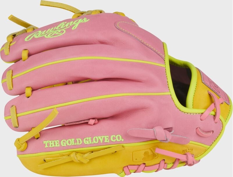 Level up your infield game with a splash of personality in the Rawlings Heart of the Hide 11.5-Inch Infield Glove. Featuring a vibrant Pink and Yellow colorway, this glove makes a bold statement while delivering the high-end performance expected from Rawlings' iconic Heart of the Hide line.