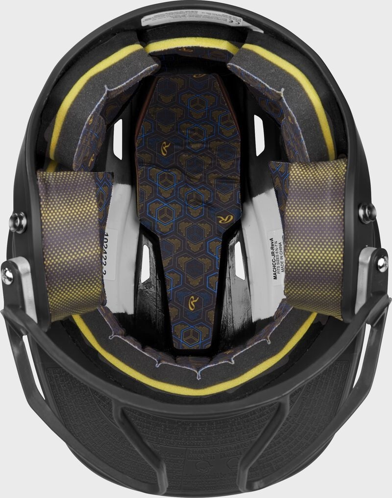 On top of that, the stainless steel cage features optimized variable thickness, ensuring your mask can stand up to anything while still maintaining a lightweight feel. The Mach Hi-Viz batting helmet is great for hot tournament days, too: Rawlings' 360 Heat Exchange technology in the wrapped jaw pads gives you optimal cooling on the field or in the cage.