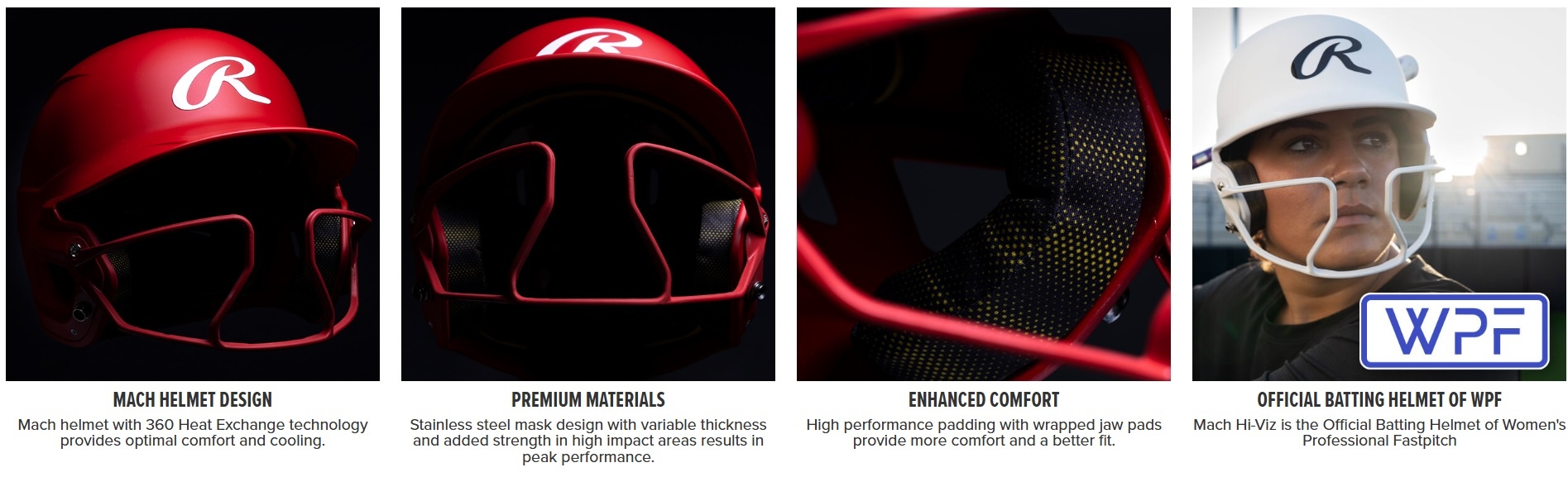 There's never been a fastpitch helmet like the Mach Hi-Viz -- that's why it's the official batting helmet of Women's Professional Fastpitch! Visibility is vital, so get your Rawlings Mach Hi-Viz batting helmet today.
