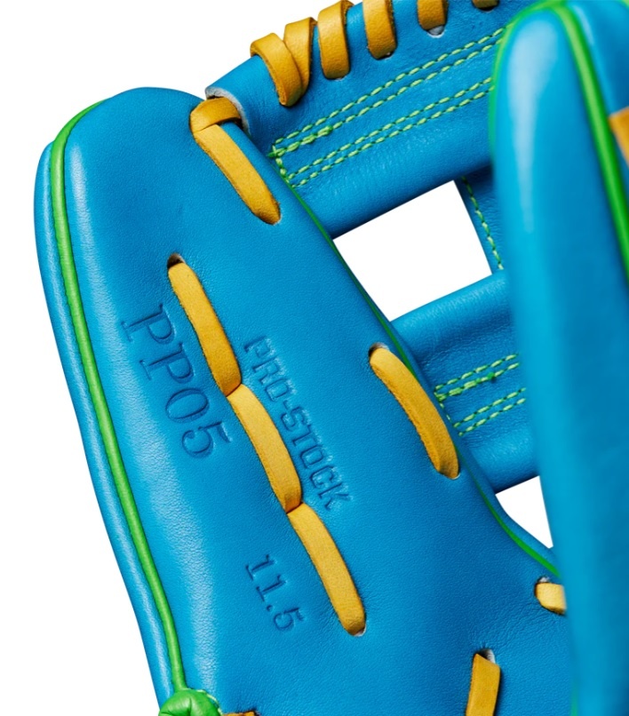 Pick it with ease at shortstop, second base or third base using the Spring 2025 A2000® PP05, an 11.5” infield baseball glove that can be shaped with a deeper pocket for reliable performance. The A2000 PP05’s sturdy Dual Post Web helps the glove keep its shape and channels every line drive, pop up and ground ball into the Sky Blue Pro Stock® leather palm. Bright Green Flat Finger Binding improves comfort when playing with a finger out, allowing players to take more control of the glove and secure outs at any base.