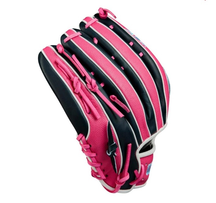 Enhance your diving catches and facilitate the return of the ball to the infield with the Summer 2025 A2K® 1750SS, a 12.5-inch outfield glove that seamlessly combines size and control. Inspired by the preferred pattern of Mookie Betts, the A2K 1750SS features a narrower heel compared to its analogous A2K 1799 model, while its 12.5-inch size is slightly smaller to facilitate the swift collection of the ball. Skilled craftsmen in Japan meticulously assemble the A2K 1750SS using unparalleled Navy Blue Pro Stock® Select leather, delivering an exceptional feel and performance. A robust Dual Post Web and Double Palm Construction ensures the glove’s retention of shape during home run robberies and sliding grabs. Flamingo Pink SuperSkin™ maintains the glove’s lightweight while simultaneously delivering exceptional performance and aesthetics.