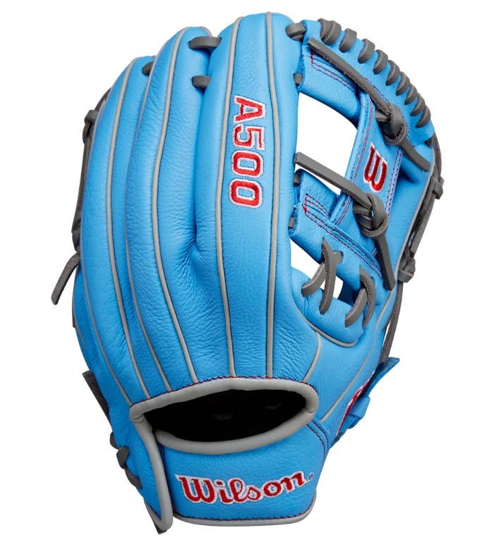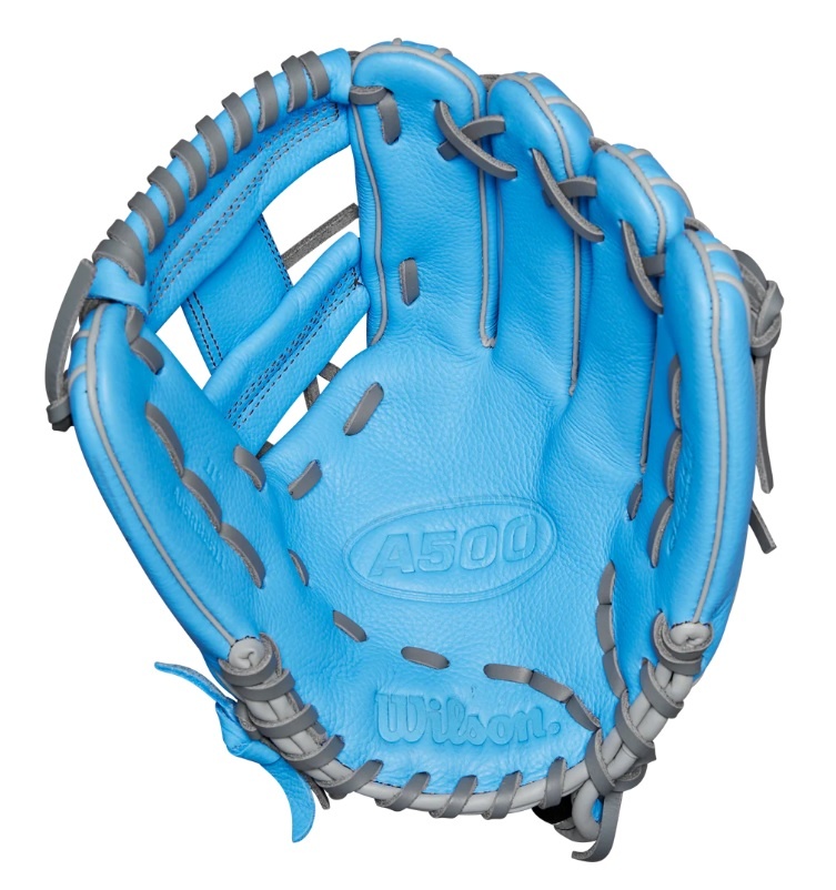 The 11" A500 baseball glove features full leather construction that's soft and ready to play after a quick break-in process, helping young ball players learn the ropes on defense. Cool Blue & Grey Top Grain leather offers a lightweight feel to give players ages 6 and older easy control of the glove, and the self-adjusting Quick Fit Wrist strap hugs the back of the hand. Wilson's iconic H-Web is designed to catch ground balls or pop ups anywhere on the field.