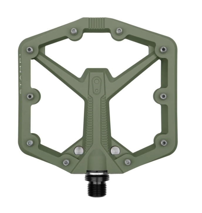 A true concave body design cradles your shoe and provides un-interrupted contact with the pins. The spindle and bearing design borrowed from our Stamp 7 pedal eliminates any "axle bump" or bulge down the centerline of the pedal, resulting in consistent, confidence-inspiring grip.