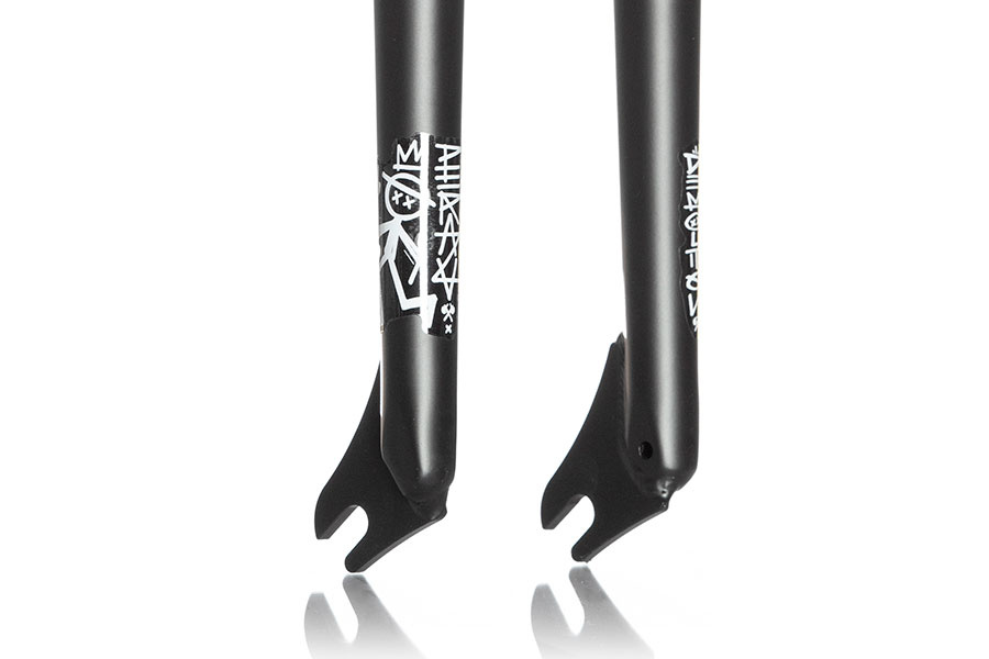 The all new Signature Kevin Peraza KP fork is made from 100% heat treated CRMO hydroformed tubing with solid cnc dropouts. Kevin has been testing these for the last two years and couldn’t be more stoked. The feature a 1-pc internally and externally butted steerer tube and tapered legs. Wider blades to fit bigger tires. Legs cut for pegs and custom designed for strength and durability while grinding. Clean and tight inside dropout/leg weld for our whistler front hubguard clearance.
