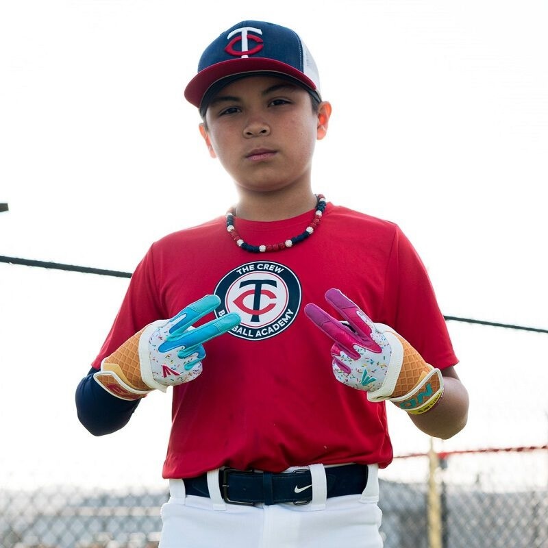 Take your game to a new level with these Walk-Off Ethos batting gloves! These gloves feature a stylish, eye-catching Sugar Rush design so you'll stand out at the plate every at-bat. Equipped with improved features like a durable goatskin palm, comfortable Lycra back, and a touchscreen compatible thumb these batting gloves are a step above the rest!\