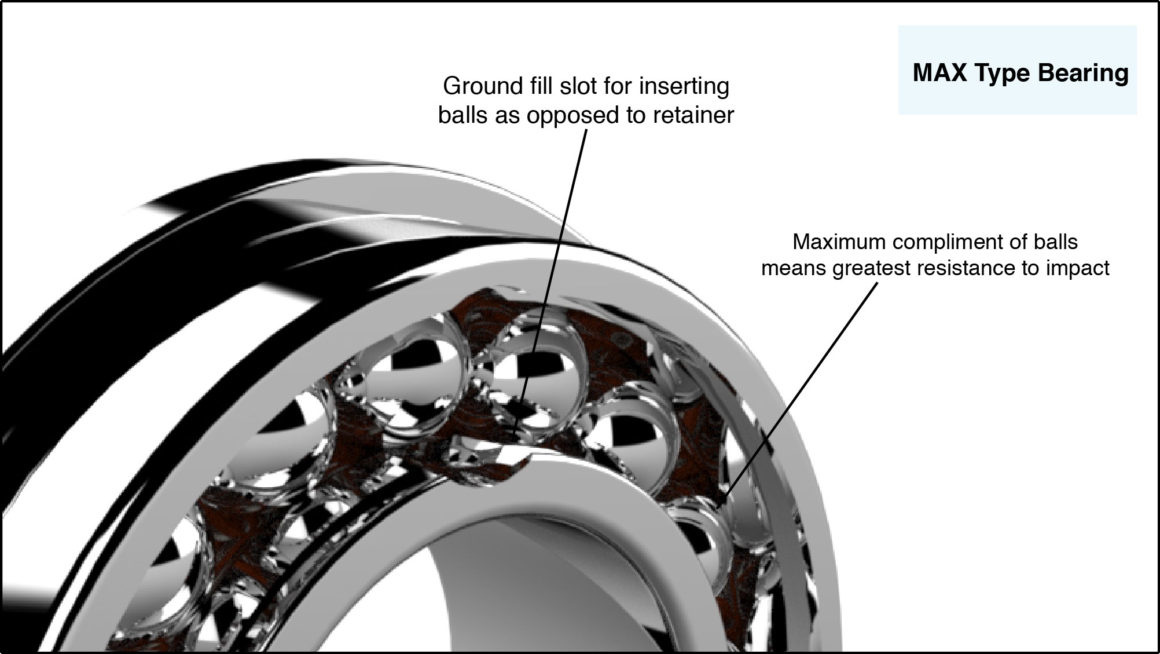 • Commonly designed for suspension pivots due to their capacity to withstand 35-40% more load capacity than standard radial bearings