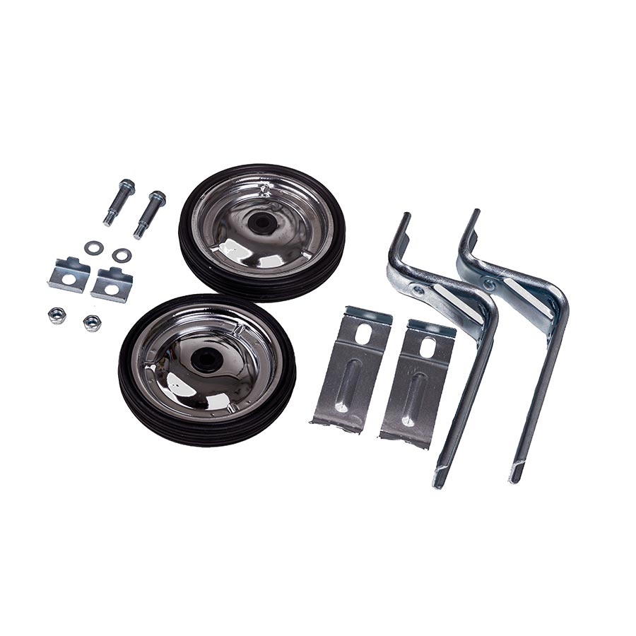 Product descriptionTraining WheelsProduct # 690073 Fit wheel sizes 12" to 20"Chrome plated steel wheelsSturdy steel brackets and staysEasy to install and adjust