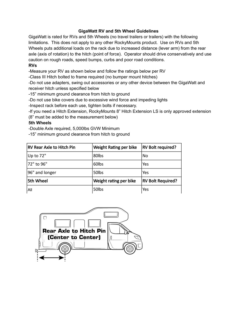 - RV Rated and 5th Wheel (no travel trailers) with reduced weight ratings