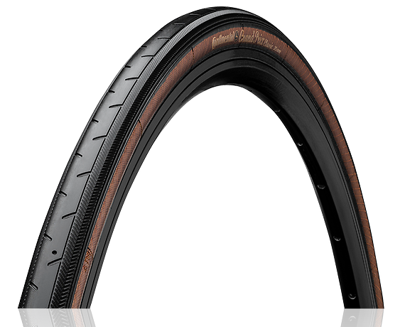 Features with brown sidewalls and the original Conti Sport tread pattern from 1982.