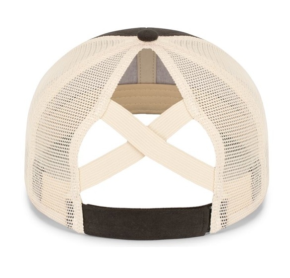Washed cotton twill and vintage mesh give this cap soft structure, while the crisscross back opening offers a comfortable fit for ponytails.
