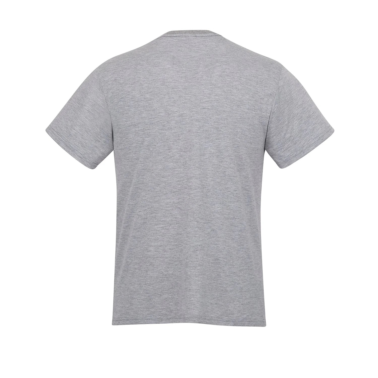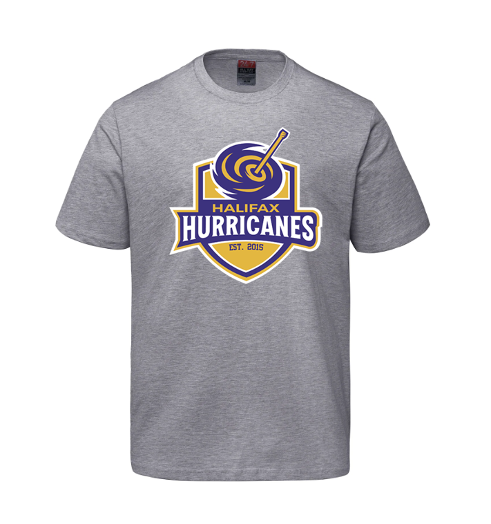 100% ring spun combed cotton jersey, 65% ring spun combed cotton, 35% polyester jersey. 30 single yarn. Rib knit neckline with spandex for shape retention. Jersey knit back neck and shoulder tape. Tear away label.