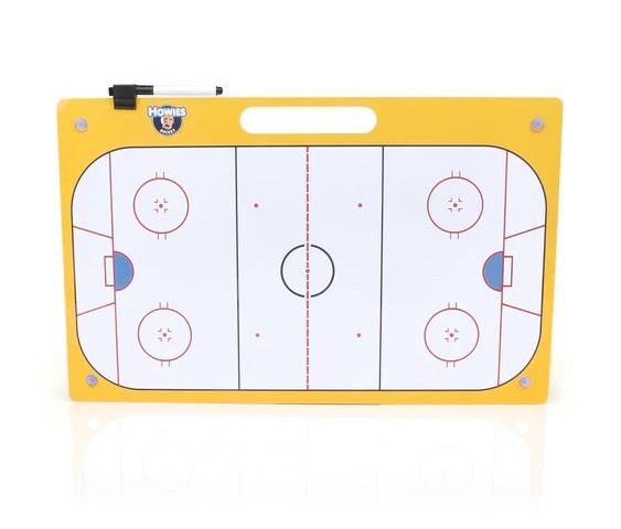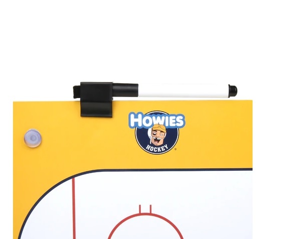 Some people dream of sugarplums – Coaches dream in x’s and o’s. From scheming up forechecks to drawing up an ironclad defense, the Howies Hockey Coach's Board helps those dreams come to life. Howies Coach's Board comes with a dry-erase marker, textile eraser, and suction cups to make sure your board can go high on the glass for the team to see. The perfect board for you or the coach in your life.